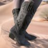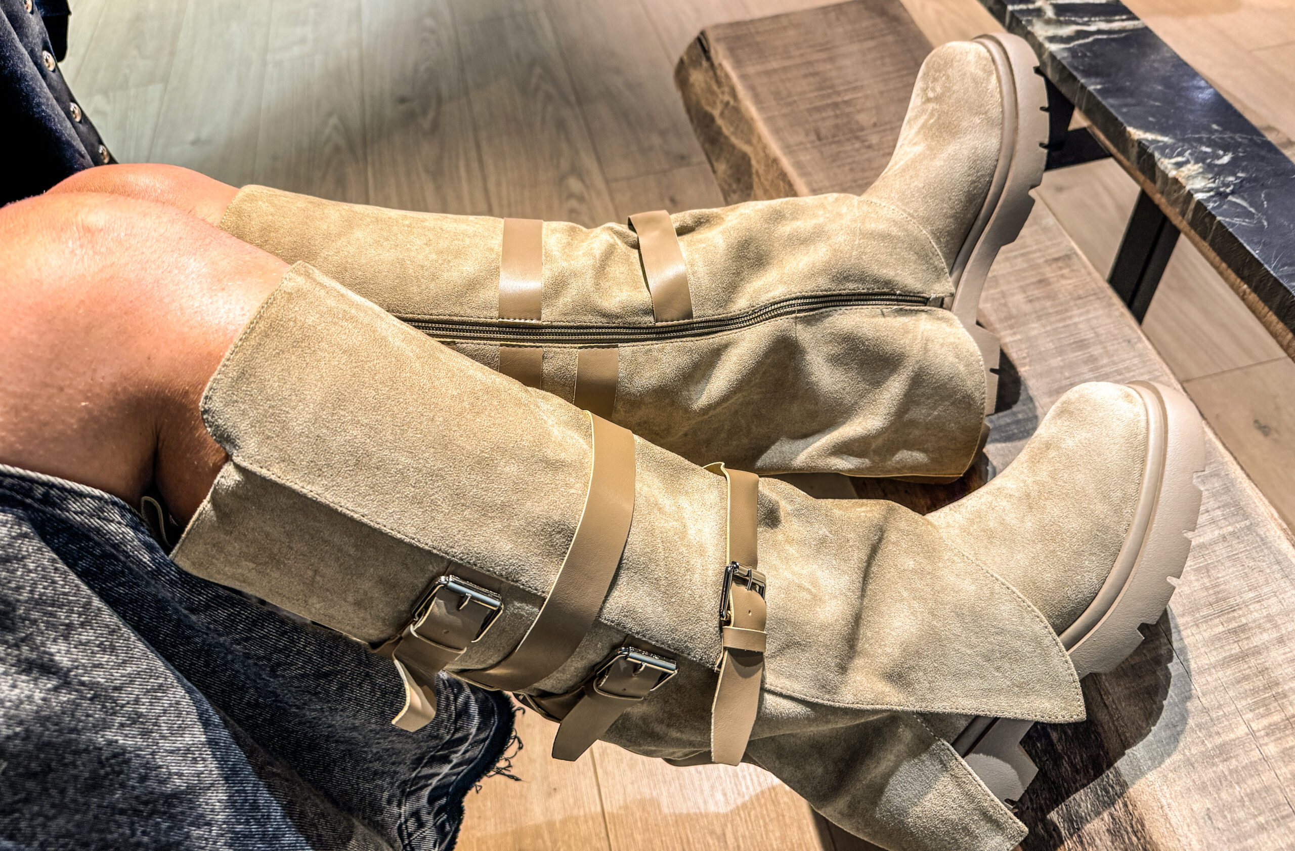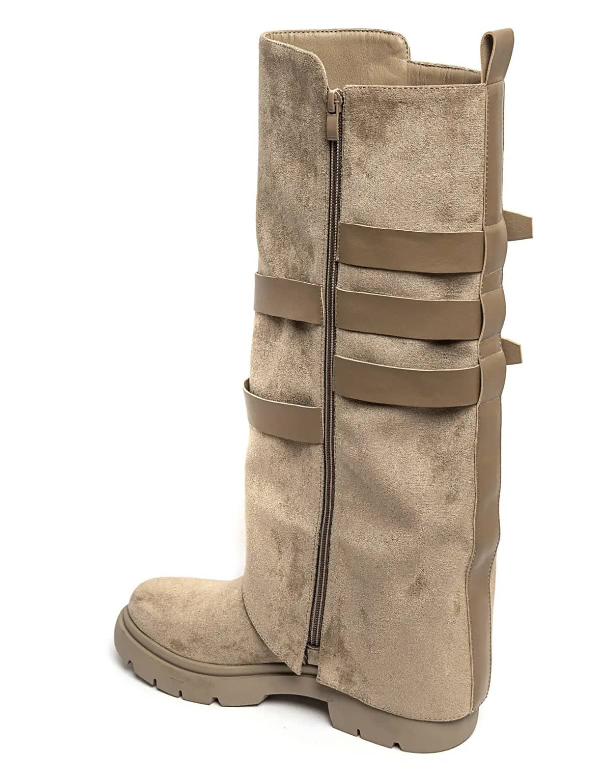 Bottes en daim avec des lanières en simili cuir.