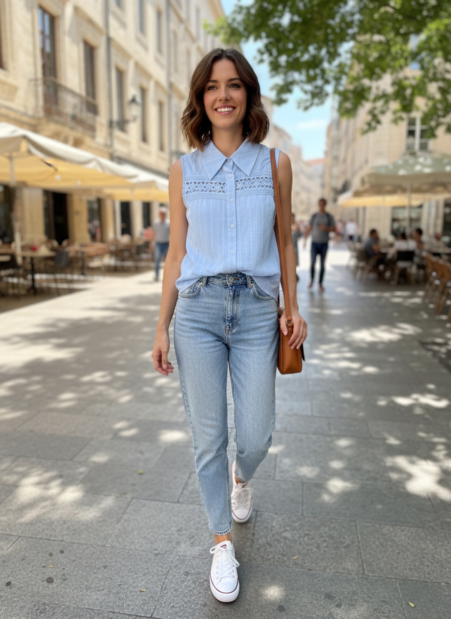 Chemise sans manches, bleue ciel.