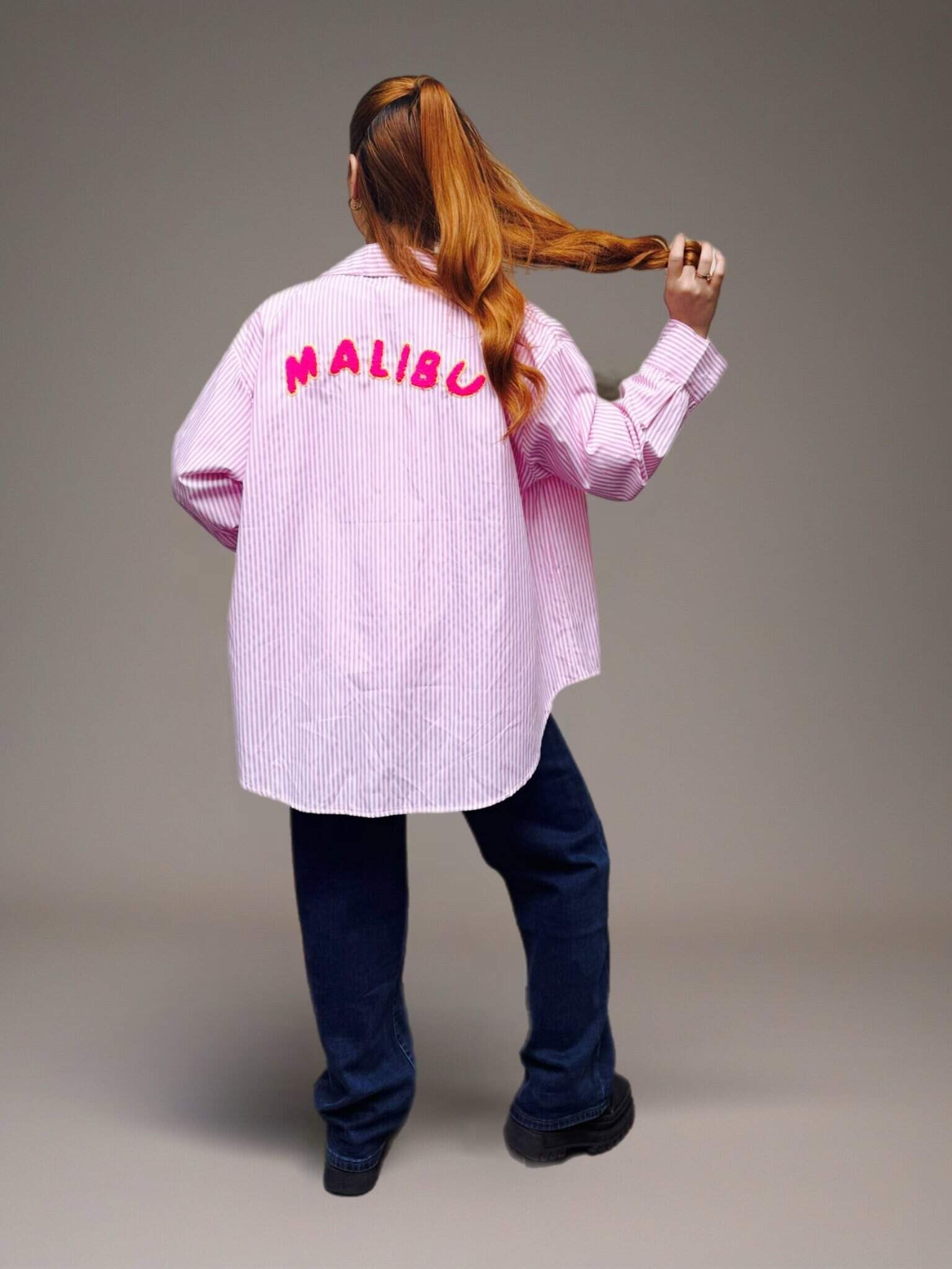 insciption MALIBU dans le dos et un petit palmier sur la poitrine.