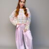 Dentelle sur le bas et sur les manches.